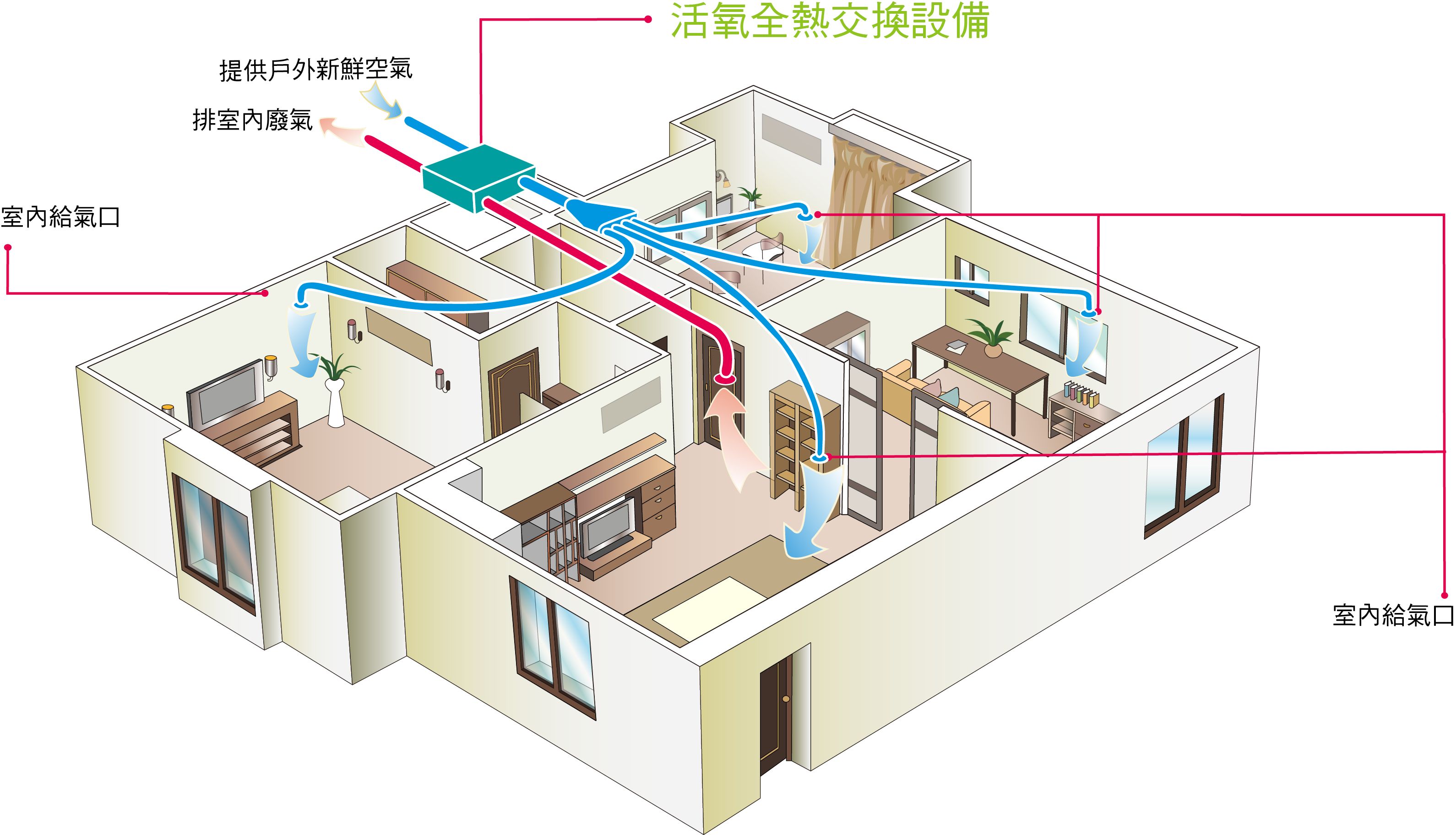 目前,我國新風產品還沒有國家標準。在這種情況下,教室為何要安裝新風而非空氣凈化器?河北省潔凈行業協會會長宋建立教授解釋說,學生在教室里上課,門窗緊閉,室內二氧化碳濃度會快速上升。空氣凈化器能吸附PM2.5、甲醛等污染物,但是對封閉空間內的空氣進行內部循環,無法解決增氧和二氧化碳問題。新風系統將室外新鮮氣體經過濾、凈化、增氧、調溫等處理后通過管道輸送到室內,并把室內污濁空氣排出到室外,通過室內外空氣置換來實現室內空氣潔凈,解決健康需求。